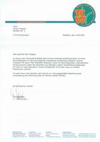 Sportlerball Weilheim 17. September 2005 (...) im Namen des Tennisclub Weilheim darf ich mich nochmals herzlich bei Ihnen und Ihren Band-Mitgliedern für die hervorragende musikalische Umrahmung anlässlich unseres Festaktes "50 Jahre TCW Weilheim" bedanken. Durch Ihr stimmungsvolles, unterhaltsames Musikprogramm haben Sie wesentlich zum Gelingen unserer Veranstaltung beigetragen. Ich habe von allen Besuchern unseres Festabends, ob Alt oder Jung, nur positive Resonanzen erfahren. (...) <zum Sportlerball in der Limburghalle in Weilheim am17.09.2005> |