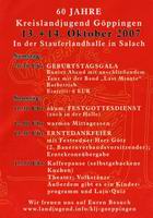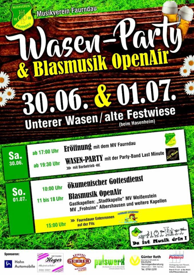 Altensteig Faschingsball (Festhalle) Bezgenriet Gewerbehock Bezgenriet Kinderfest Deizisau Schleglerball Donzdorf Radschellenball Donzdorf Stadtfest Dürnau Silvesterball Eislingen Stadtfest Eschenbach Krautfest Eckwälden (900 Jahres Feier) Faurndau Dorffest Faurndau Wasenparty Filderstadt Abiball Göggingen Camping Club Welzheim Göppingen Polizeiball Gruibingen Brunnenfest Heiningen Abiball Heiningen Starenfest Jesingen Winterabschlussfest Kreislandjugend Jahresfeier Lenglingen Käfertreffen Lorcher Faschingsball Rechbergausen Vollgascup Reichenbach a.R. Rosenmontagsball Reichenbach i.T. Faschingsball Reudern Silvesterfeier Staren Kebab Sommerfest Salach Faschingsball Ottenbach Rosenmontagsball Wäschenbeuren Halloweenparty Wäschenbeuren Gombiger Weilheim Sportlerball Winzingen Prunksitzung Zell Kinderfest/Silvesterball |