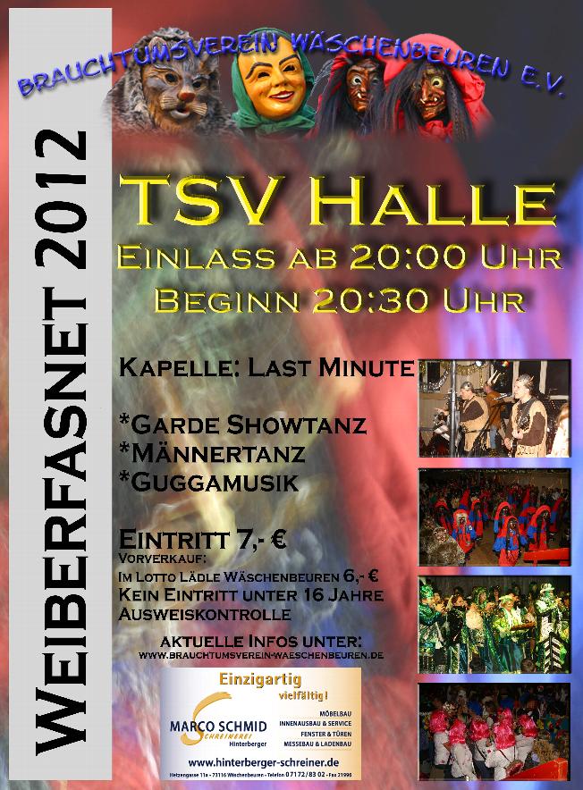 Gombiger Doschdig 2006 20.30 Uhr die Toren der Bürenhalle sind geöffnet, die Halle liebevoll geschmückt und hergerichtet, die Getränke an der Bar eisgekühlt, nun konnte es losgehen. Auch Last Minute spielte schon die erste Tanzrunde und unsere Gäste legten auch gleich los. Schon nach der ersten Tanzrunde dachte keiner mehr an die Kälte von draußen. Und das dies so blieb, hierfür sorgte unsere Tanzgarde Wäschenbeuren mit einem tollen Auftritt. Unsere Narren ob nun Hexen, Clowns, Ute Hagen oder sonstige Gestalten, alle waren voll dabei. Sollte es bis jetzt noch einen gegeben haben der ruhig saß, dann war dies beim Auftritt unseres " Blumenmann " mit Feinripp und Bienchen vorbei. |