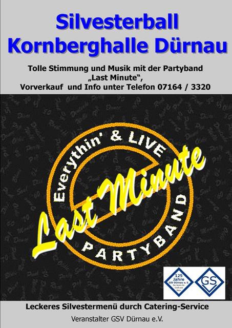 BA Horb November 2003 Einladung zur Diplomfeier in der Täleseehalle in Empfingen. (...) Die Absolventen feuen sich, mit Ihnen ein paar Stunden feiern zu dürfen. Zur Unterhaltung haben Sie ein kleines Programm vorbereitet und es darf getantzt werden zur Musik der Showband "Last Minute". (...) <zur Diplomfeier Berufsakademie Horb am 21.11.2003> |